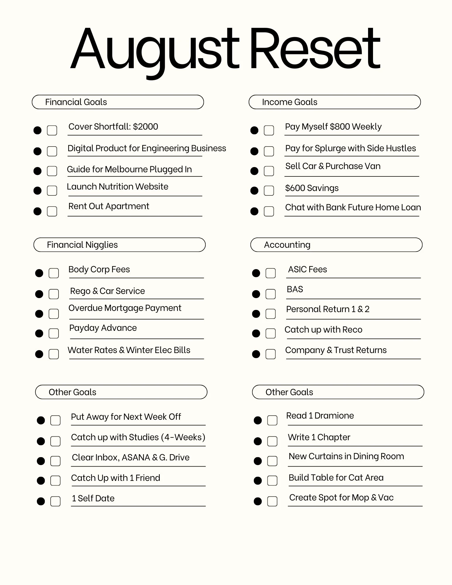 August Financial Reset